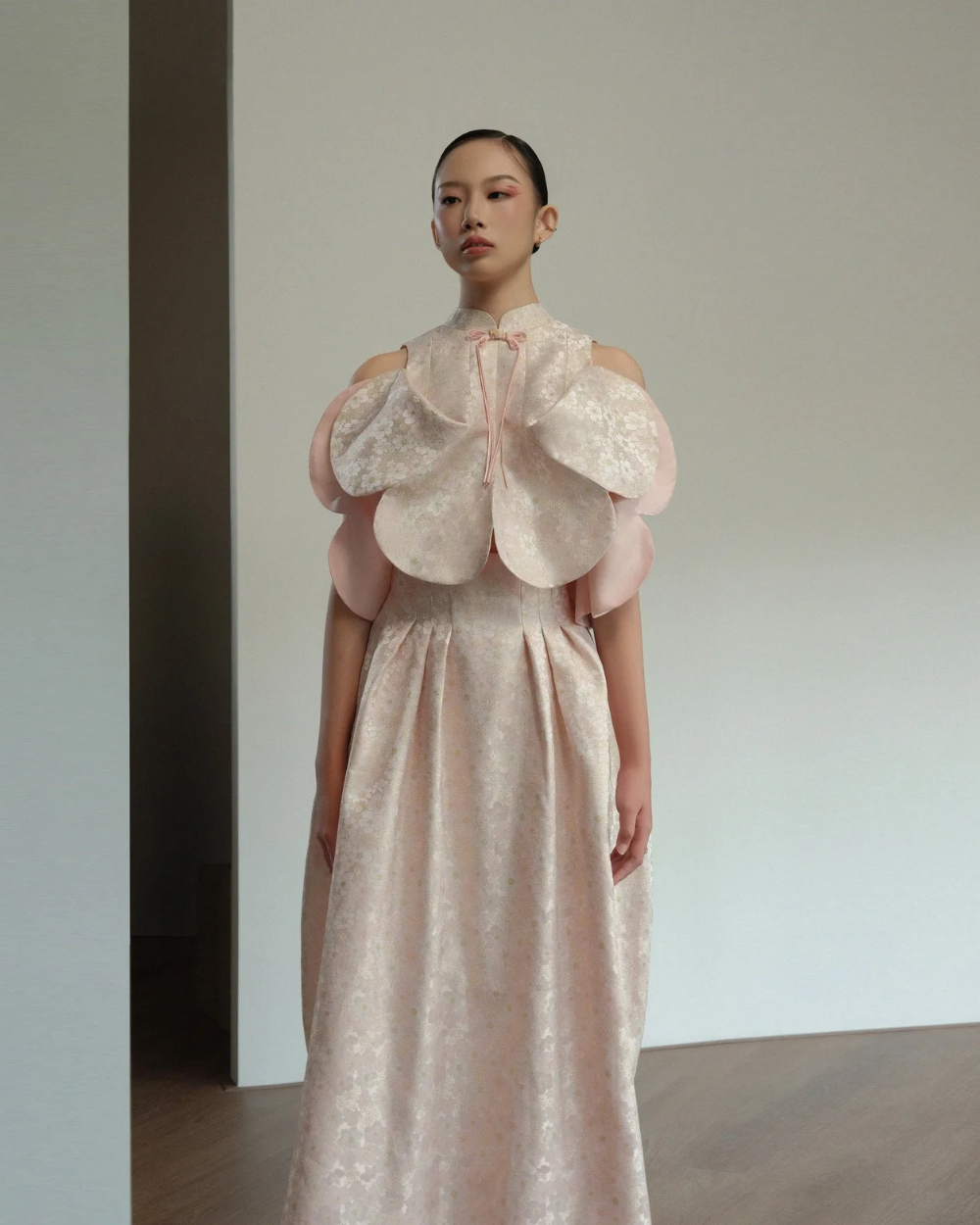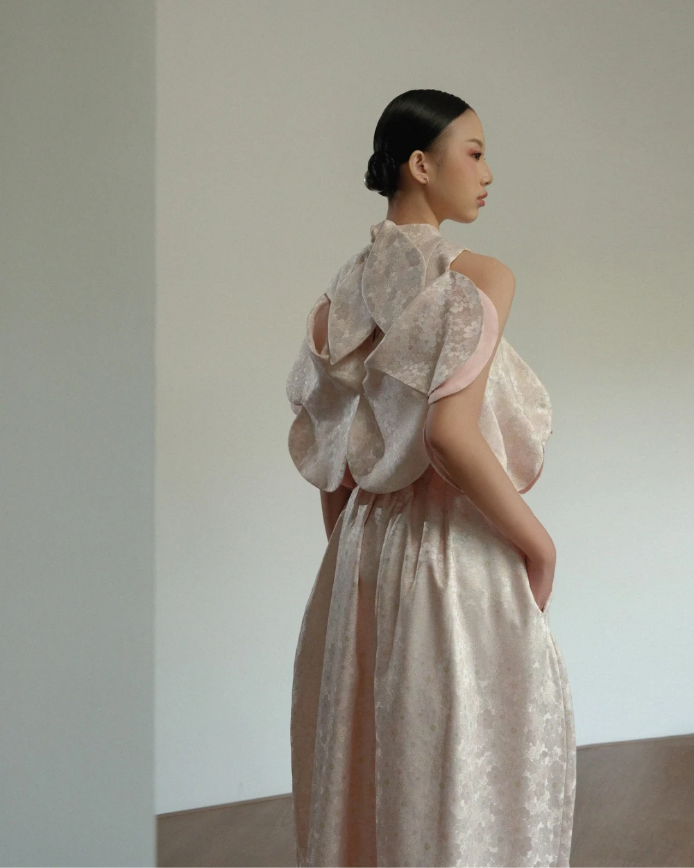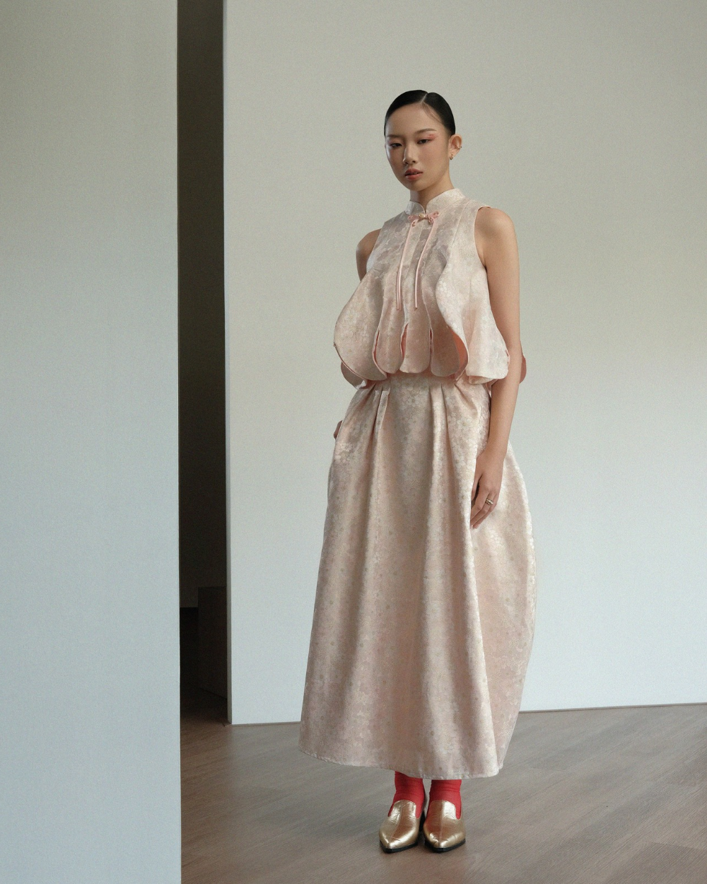 Combining elegance with innovative design versatility, this sleeveless top features a relaxed fit that prioritizes comfort without compromising sophistication. The defining element is its transformative petal-shaped panel—wear it as a streamlined silhouette, or attach the loops to hidden buttons to create a striking flower formation. It's also complemented with leaf-shaped ties at back. This dual-wear capability allows you to adapt the piece to different occasions and moods, making it a genuinely multifunctional investment.