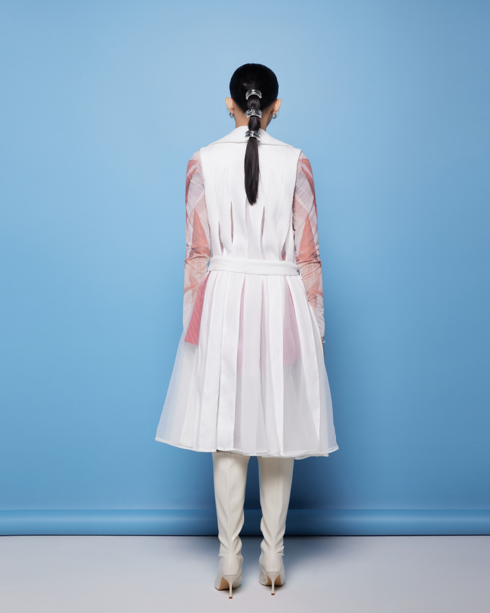 Featuring a sophisticated double-breasted design, this vest has a long cut that is enhanced by multiple paneled gores at the back. Adjustable straps at waist allow for a customizable fit. Ideal for layering.
