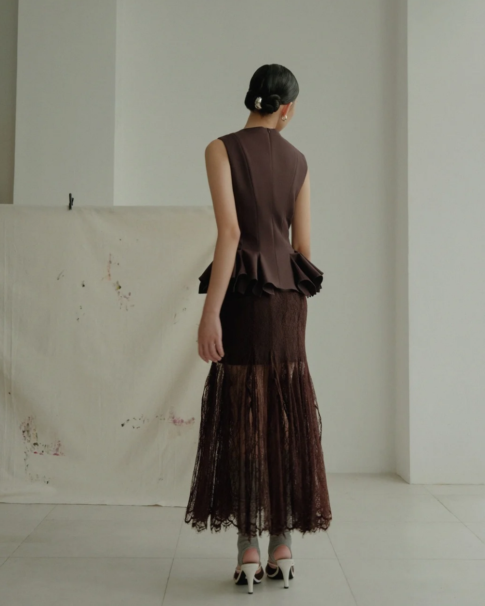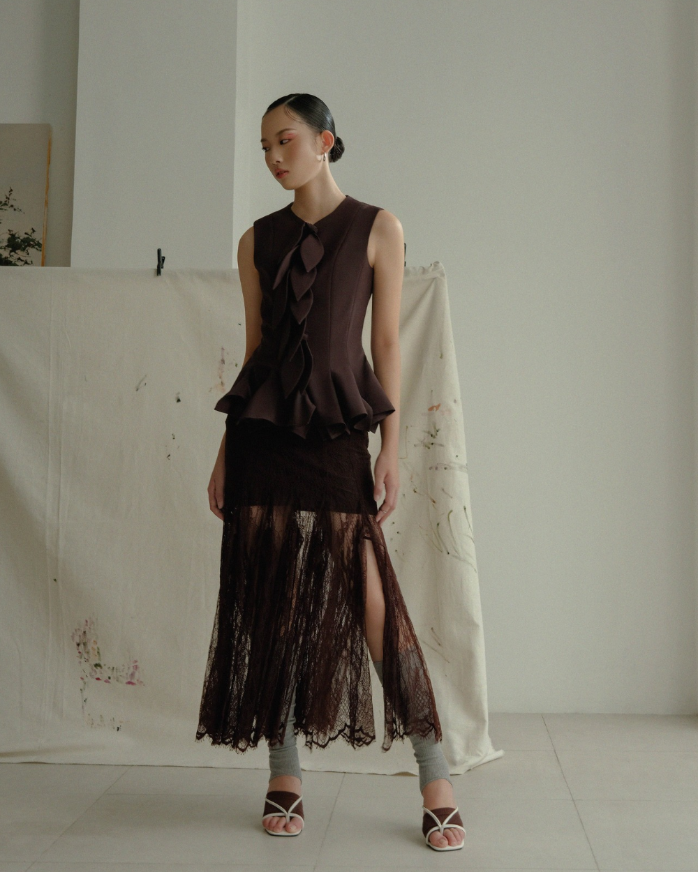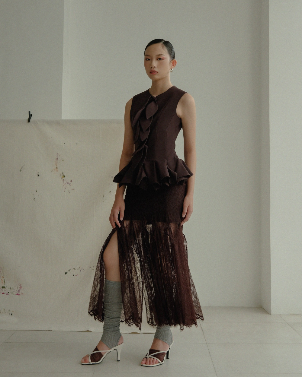 The Viola Top Espresso combines elegance with innovative construction. A sleeveless design provides clean lines, while multiple ties at the front create dynamic visual layering. Advanced 3D paneling extends from waist through hip, delivering sculpted contouring that enhances natural proportions with precision engineering.